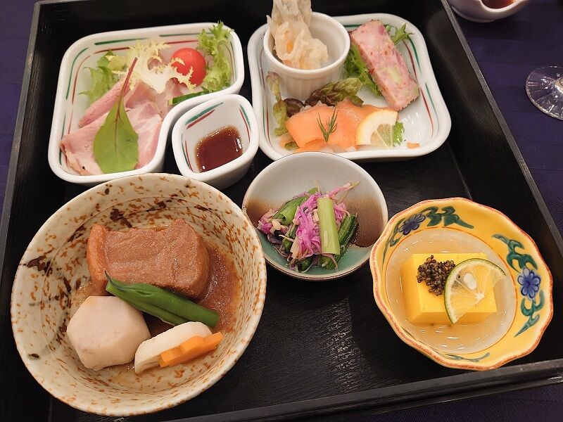 お膳の上半分とした半分で「和」なのか?「洋」なのか? って疑問がわくけど、結果は「和洋折衷」っていう当たり前な答えなんだろうな(^^;