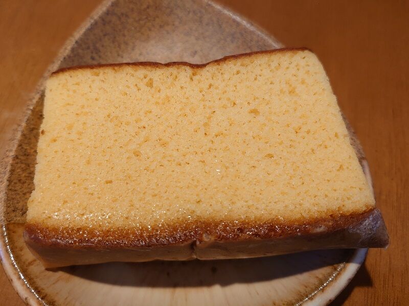 これは翌日に食べたんだけど、しっとりしていて、下にはザラメが残ってる伝統的なカステラですよ♪