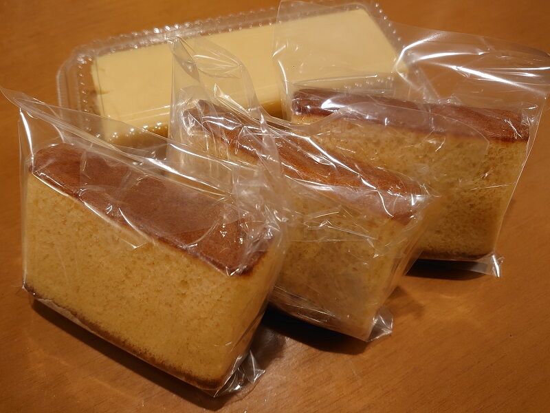 こちらがそのカステラ。カットされた個別包装がありがたいですね♪
