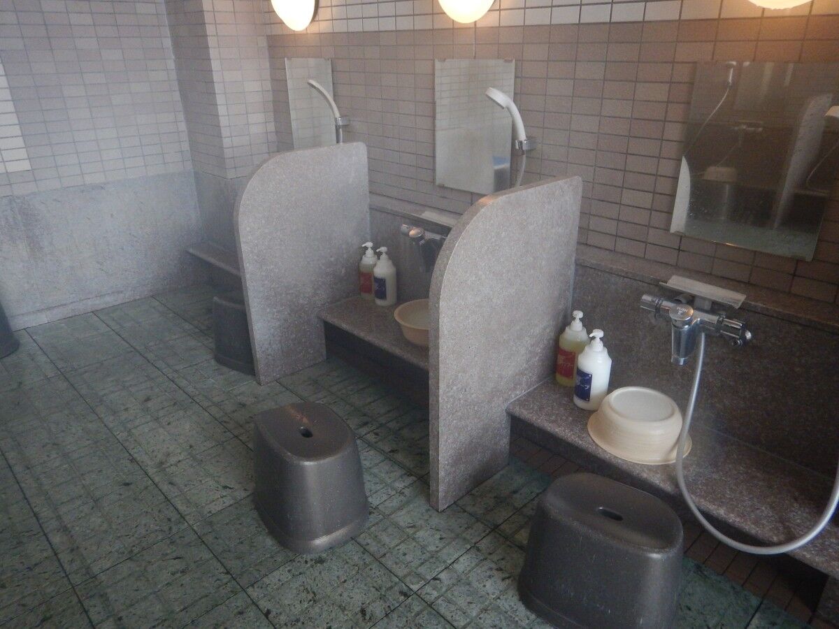 洗い場は背中合わせに2列並び、数も十分にあります。