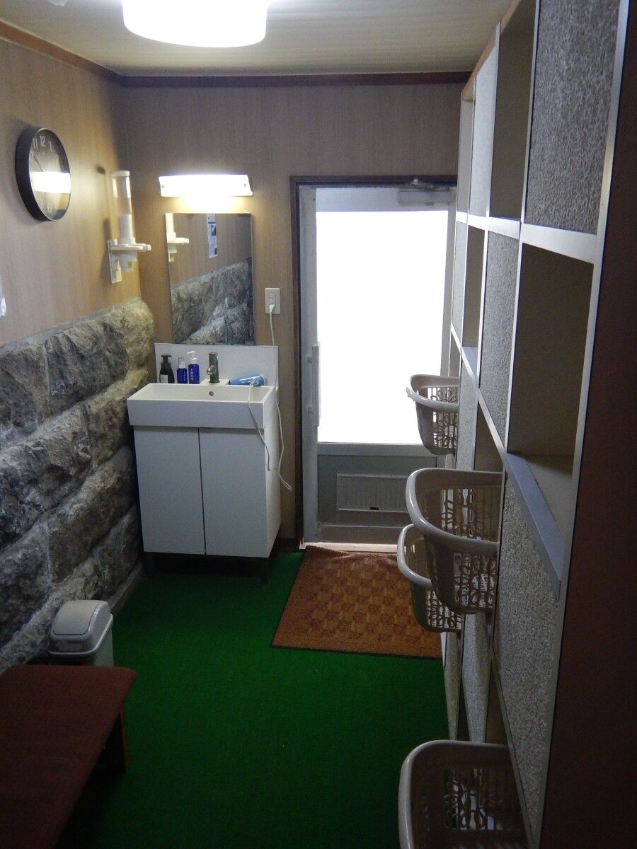 以前は石油ストーブが置いてありましたが、いつの間にか温水パネルヒーターが付いていました。
