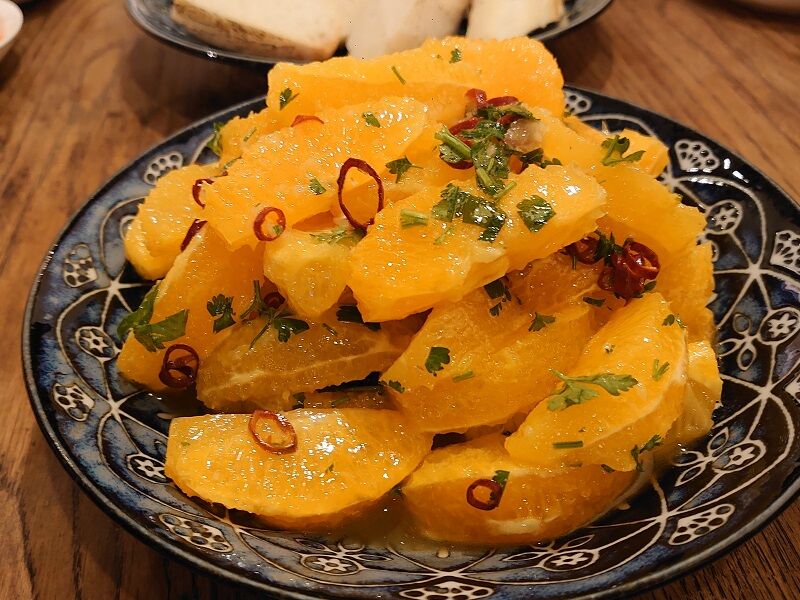 オレンジなんて、僕のイメージでは最後のデザートでしかないんだけど、唐辛子とニンニクを効かせたアレンジを加えることで、オレンジが単なるフルーツではなく立派な料理になるんだね!