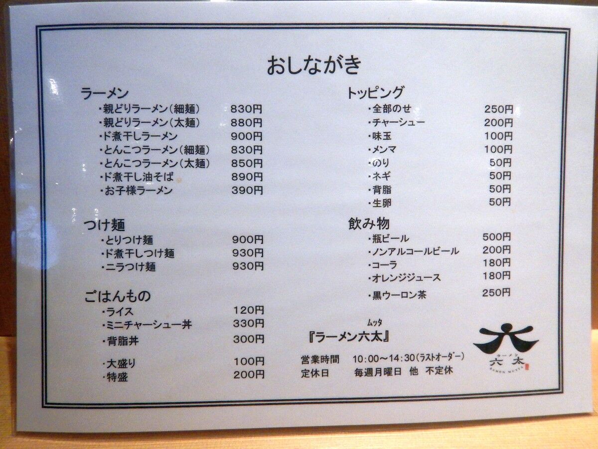 天童市 ラーメン六太
