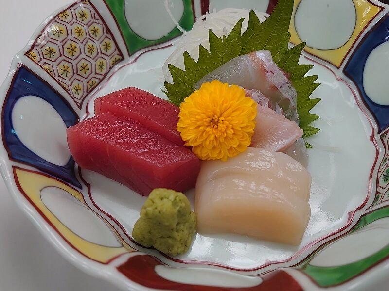 お刺身も安定の美味しさ。マグロにホタテに、後ろはタイ?