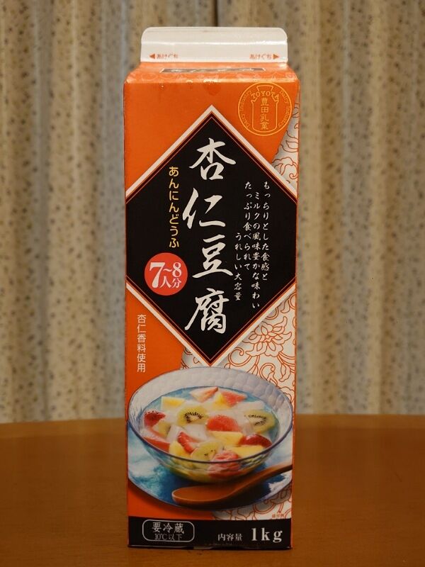先日、Big バナナボートの比較対照として登場した1リットルサイズの杏仁豆腐。