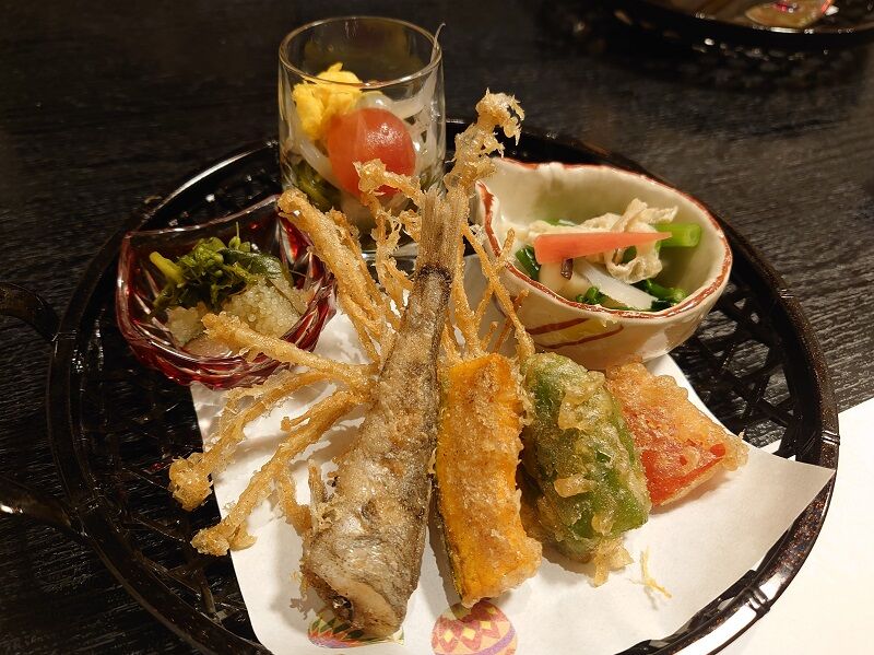 続いて、こんな天ぷらをはじめとした料理4品の盛り合わせ。