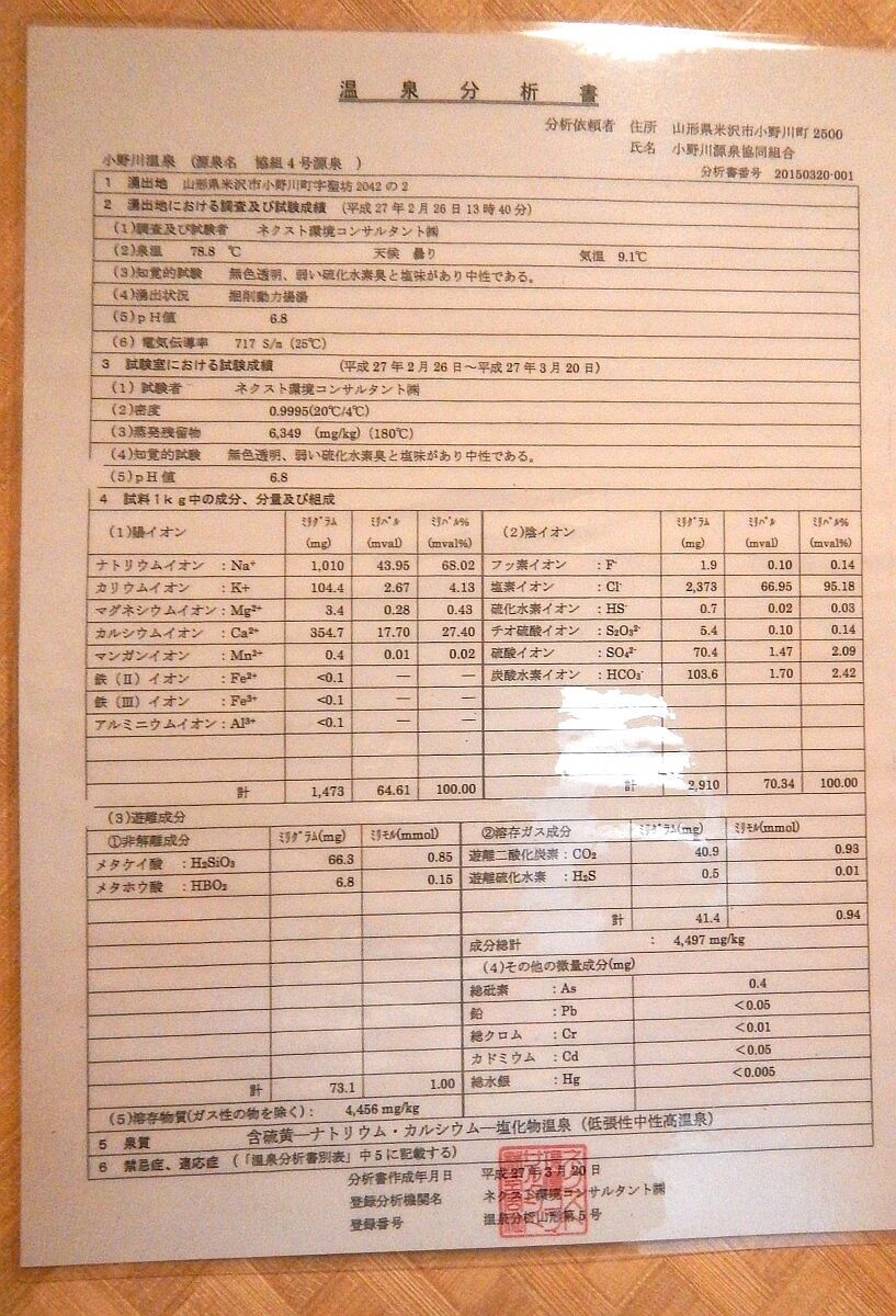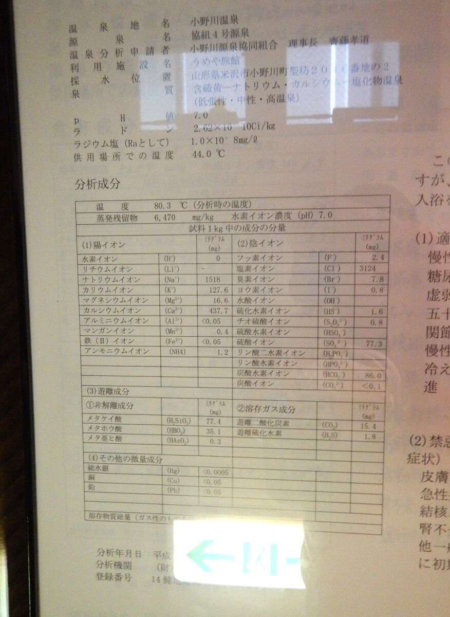 温泉成分表も掲示されていましたが暗くてちょっと見づらいですね。