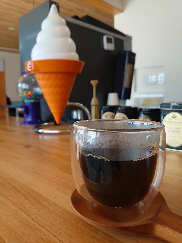 ほかにもお客さんがいたので、恥ずかしがり屋な僕はソフトクリームは自粛。軽くコーヒーをいただいてみました♪