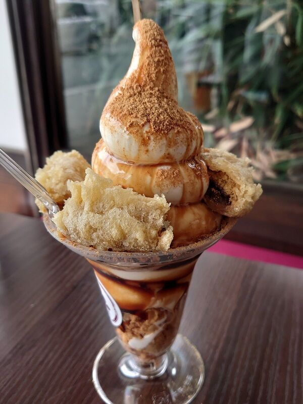 天ぷら饅頭ソフト、黒蜜きなこ。