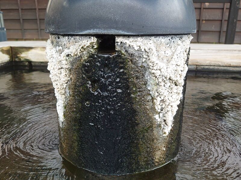 その駐車場の入り口横に、こんな温泉の源泉口がありました。