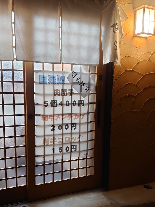 ちなみに、この玄関に貼られた週末限定のお総菜メニュー。
