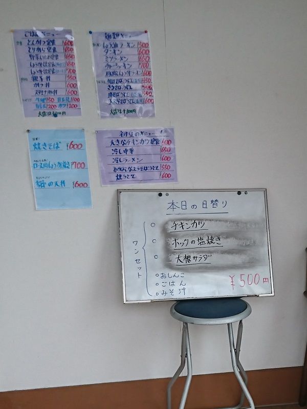 日替わりランチと、ラーメンなどが500円みたいだったよ。
