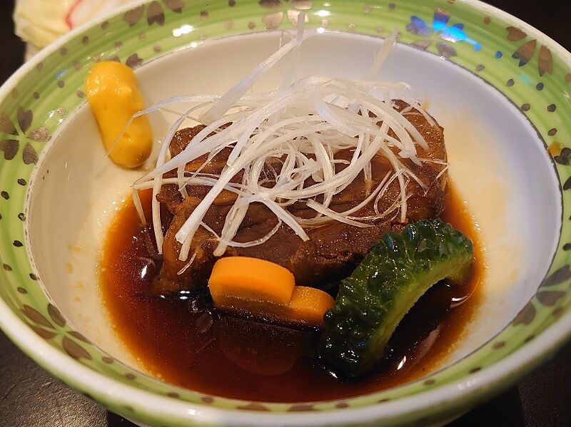 まずはラフテー。これだけの分厚いお肉なのに、箸ですっと切れちゃうんだもんなぁ~。