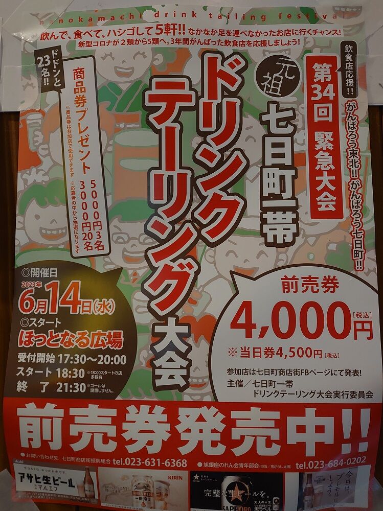 緊急大会と銘打って、ついに七日町のドリンクテーリングが復活ヾ(≧▽≦)ノ
