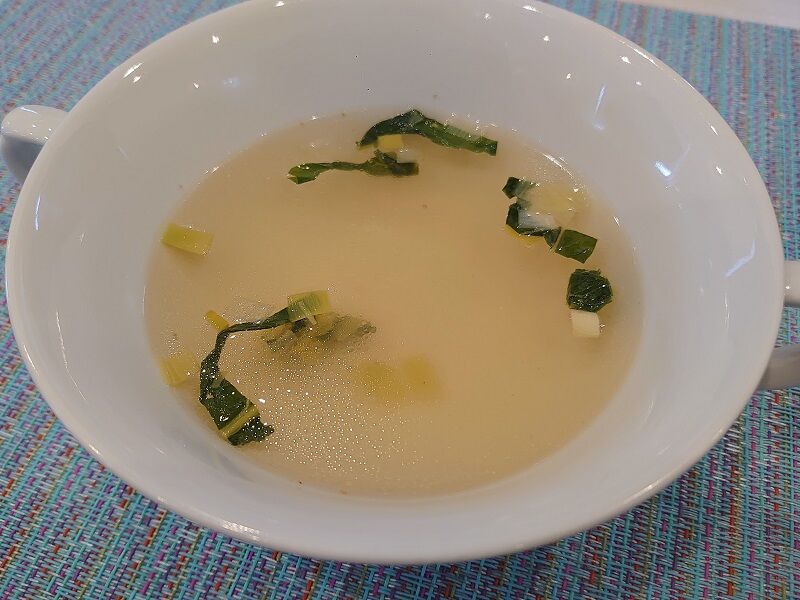 Bセットではスープとミニサラダ、それと前菜。なるほど、さっきの前菜プレートはこのミニサラダが一緒になって出された形になってたんだな。全然「ミニ」じゃないと思うけど(^^;