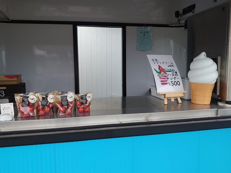 さいとう農園さんのミニトマトが1袋150円で売られてたのと、ソフトクリームに目を引かれ・・・