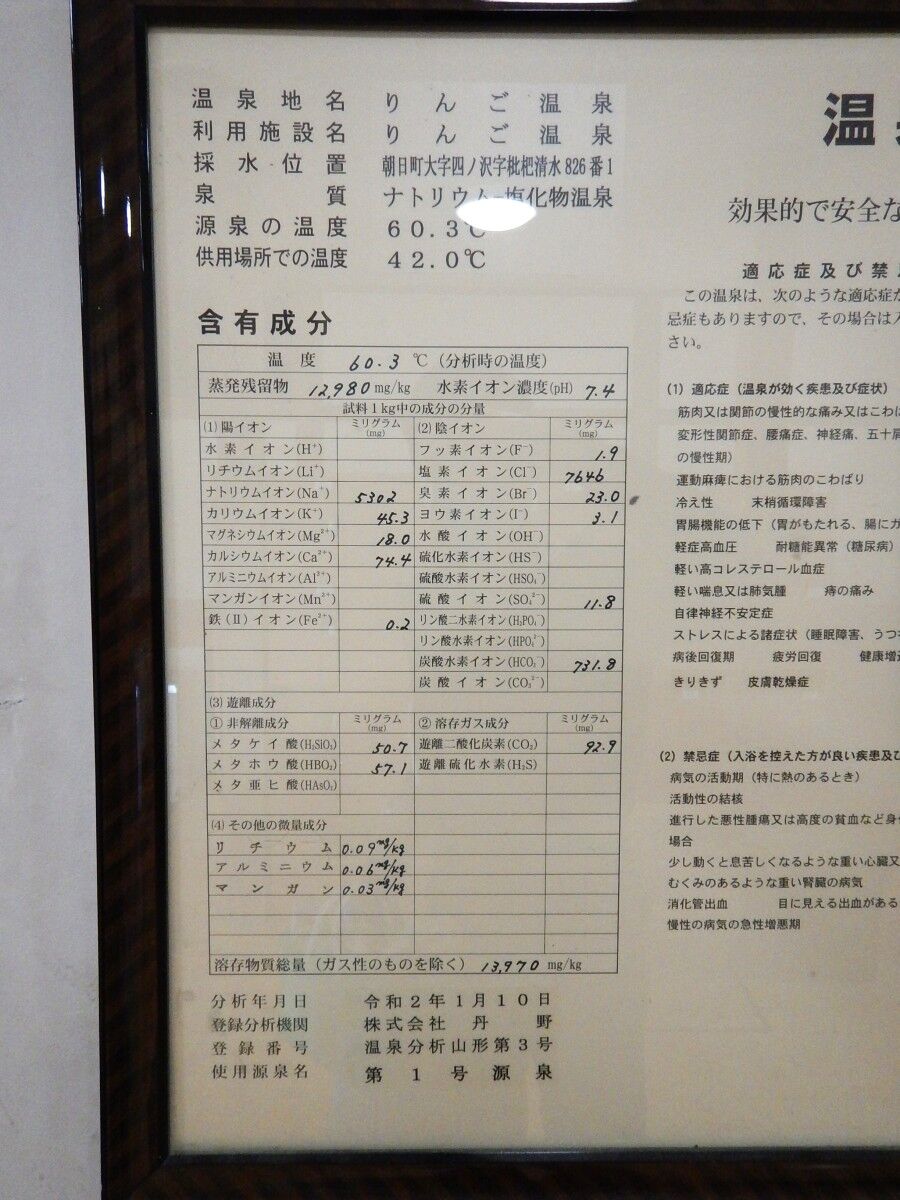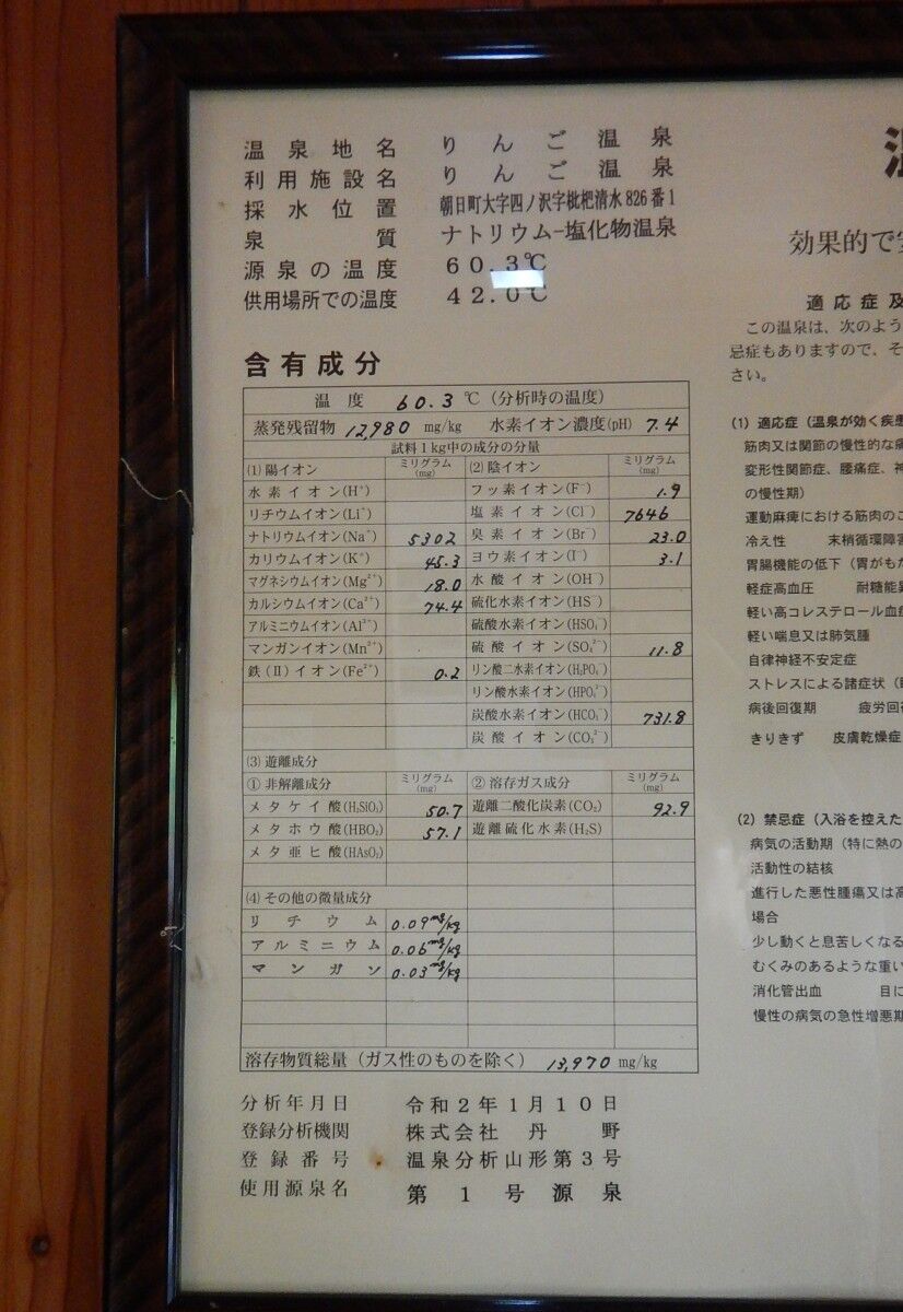 成分表を見るとかなり濃い温泉だと分かります。