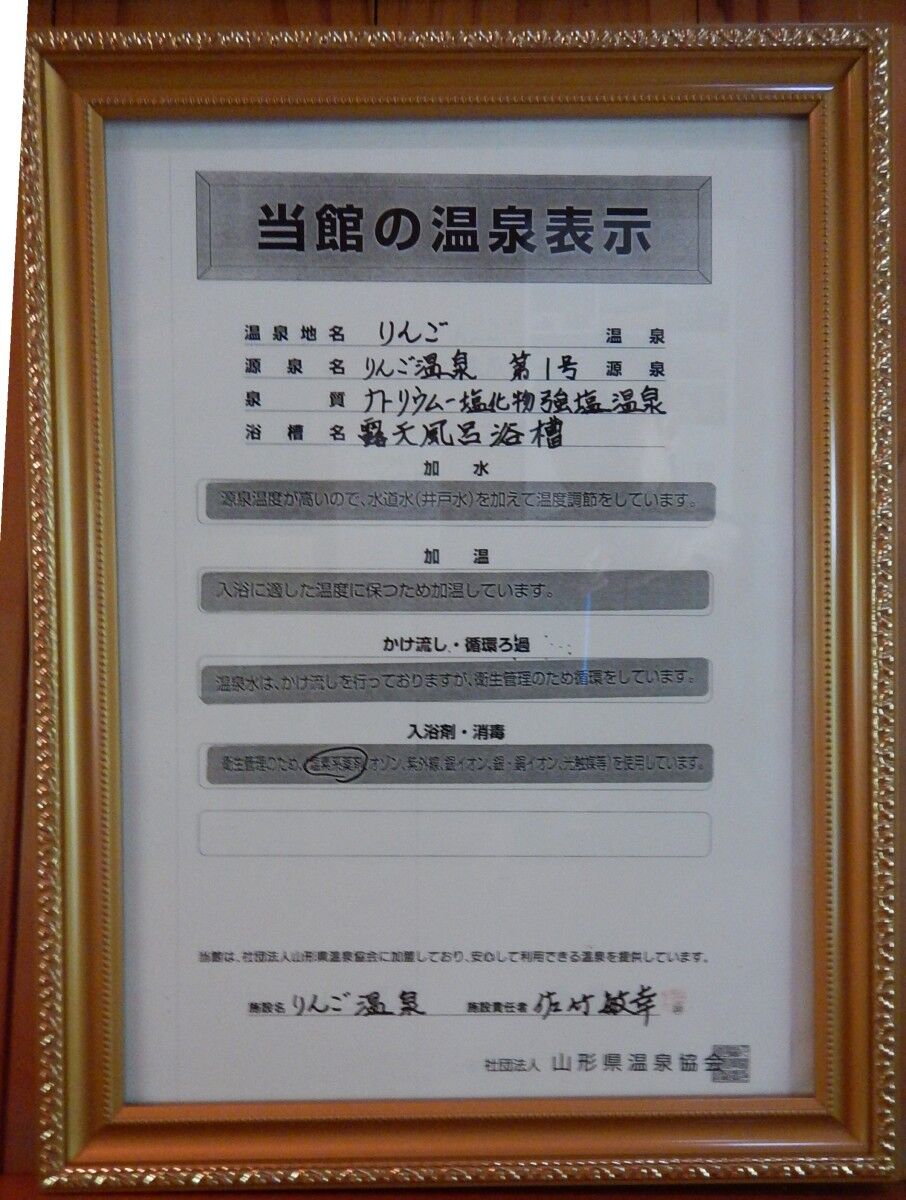 こちらにも成分表と温泉表示の掲示があります。