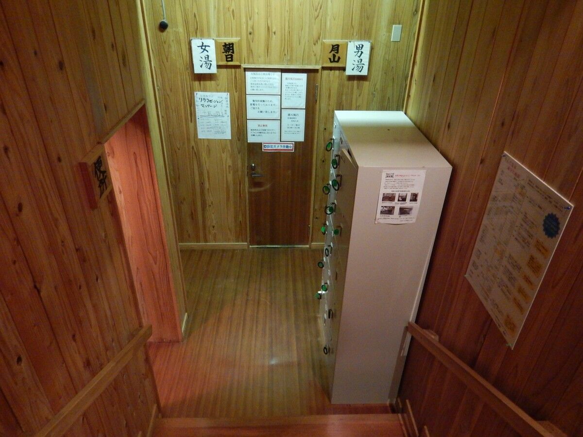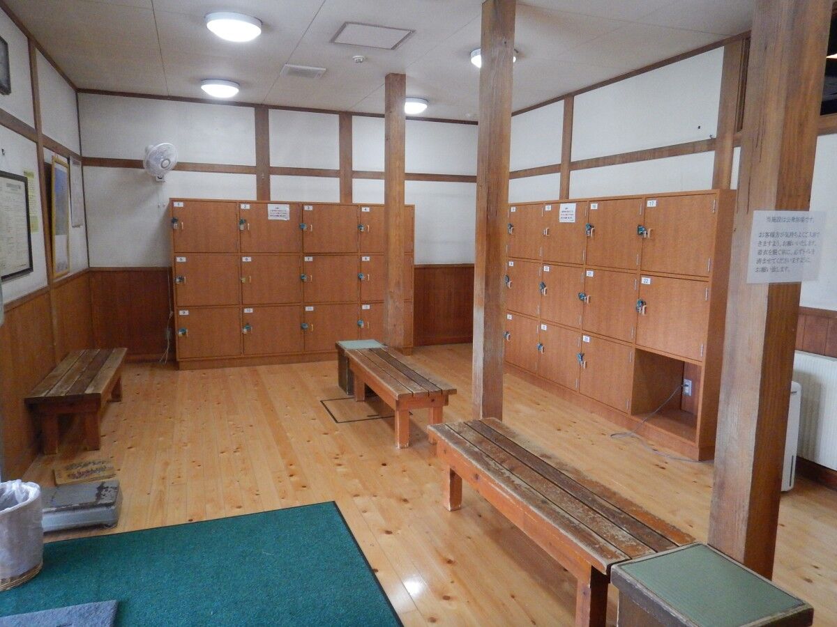 こちらは脱衣所の棚に鍵は無いため、入口の貴重品入れを利用しましょう。