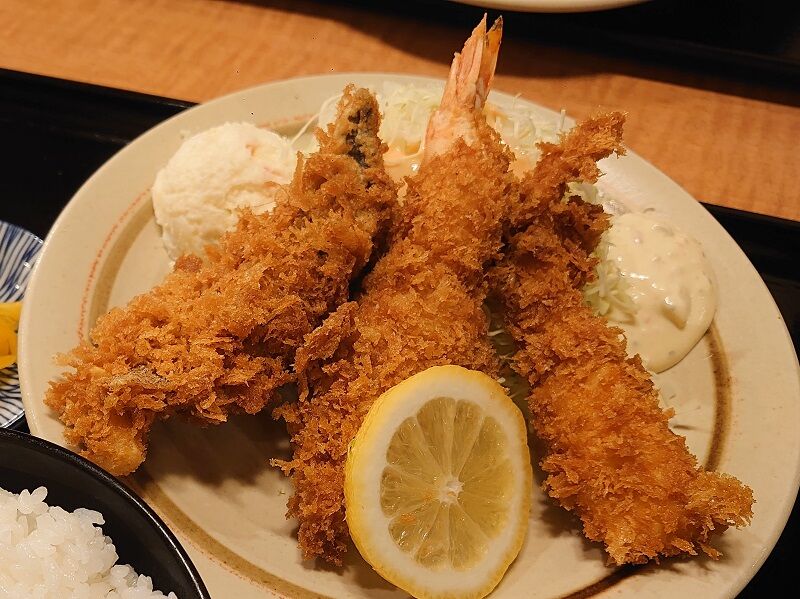 じゃーん! どうです、この美味しそうなミックスフライ定食♪