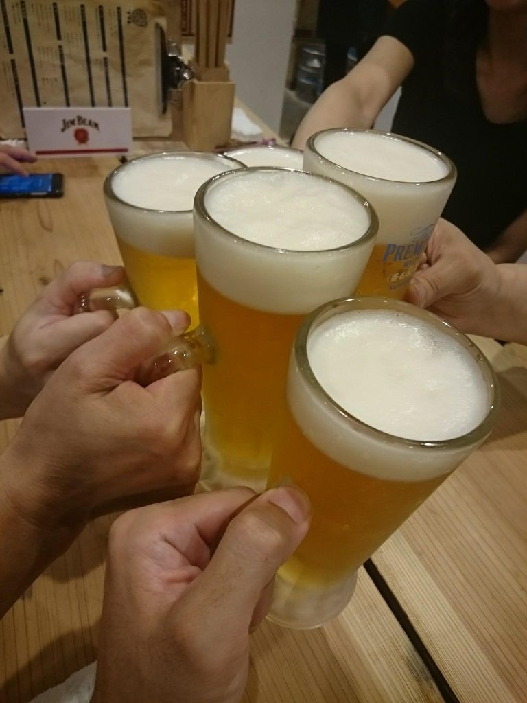 飲み放題メニューの中からビールを選んで乾杯。銘柄はプレミアムモルツの香るエールです。