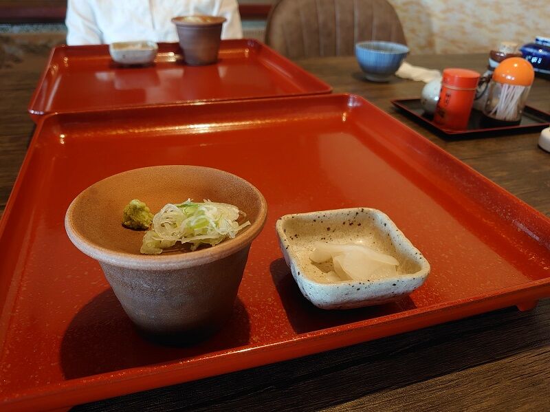 蕎麦を注文すると、すぐにこのお膳が運ばれてきます。
