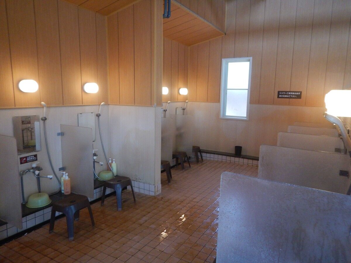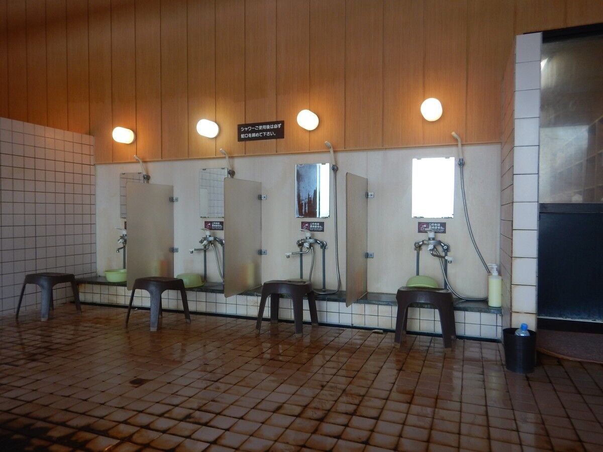 パーティション付きの洗い場は、お湯の調整は問題無し。