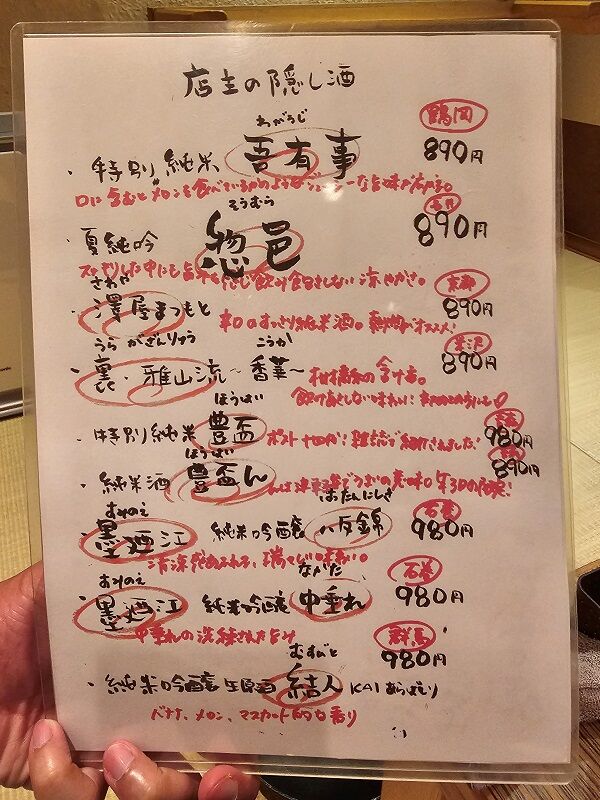 飲み放題の日本酒は庄内誉だけなんだけど、別料金ではこんなに日本酒が充実してます。