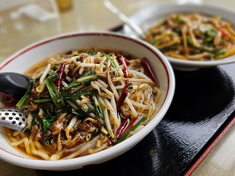 そのうえで、最近食べたかった辛い系の台湾ラーメンと、ここしばらく食べてなかった青椒肉絲が食べたくって、このセットに落ち着いたところです( *´艸`)