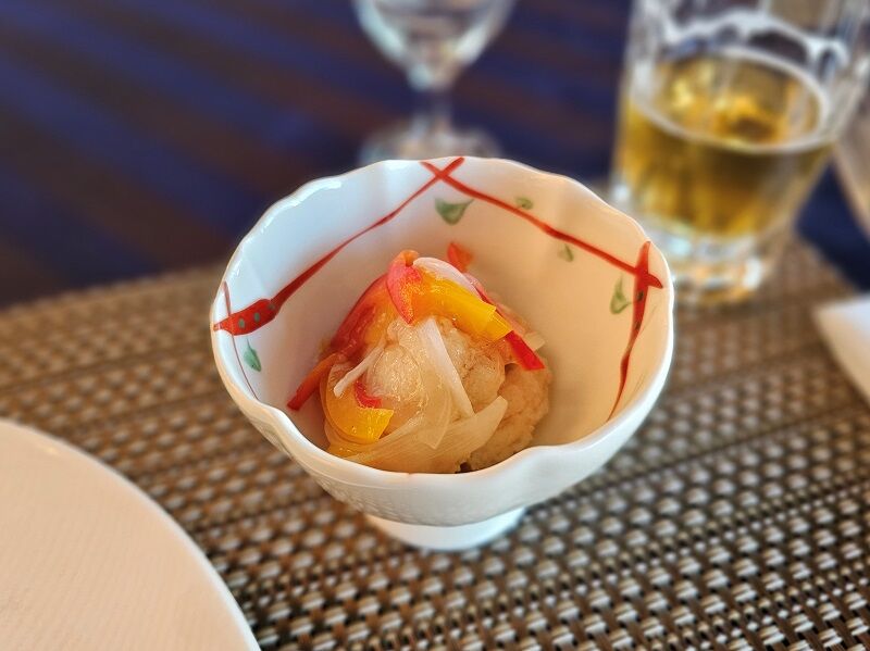 ひと品目から、ちょっと目新しい感じの料理だなーと思ってたんだけど、2品目もこんな感じ。