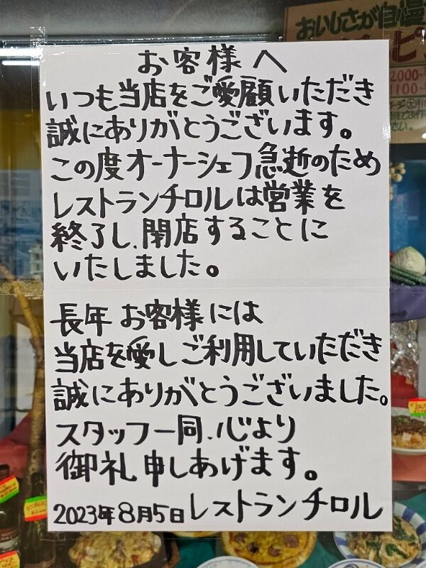もとのWEBサイトでこの記事を読む→まさかのチロルさん閉店。