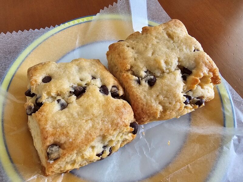 チョコチップ入りで控えめな甘さはコーヒーと一緒にいただくのにちょうどいい感じですね♪