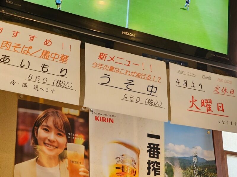 そろそろ食べ終わろうかというときに、ふとテレビを見上げて面白いメニューを発見。