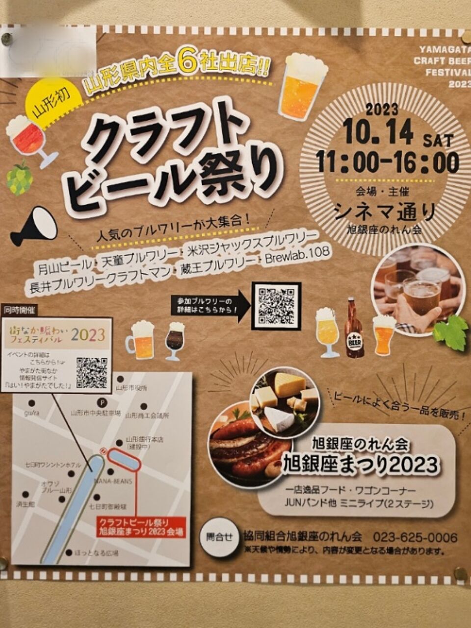 こんなの見つけた!シネマ通りのクラフトビール祭りヽ(*´∀`*)ノ県内の全6社が集まるのは山形初!だそうです(^^;