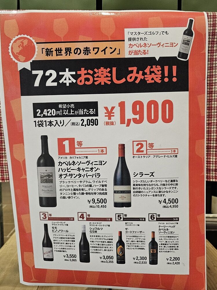 そして、1等の一番お高いワインの価格は、なんと9500円ですよw(゚o゚)w!!