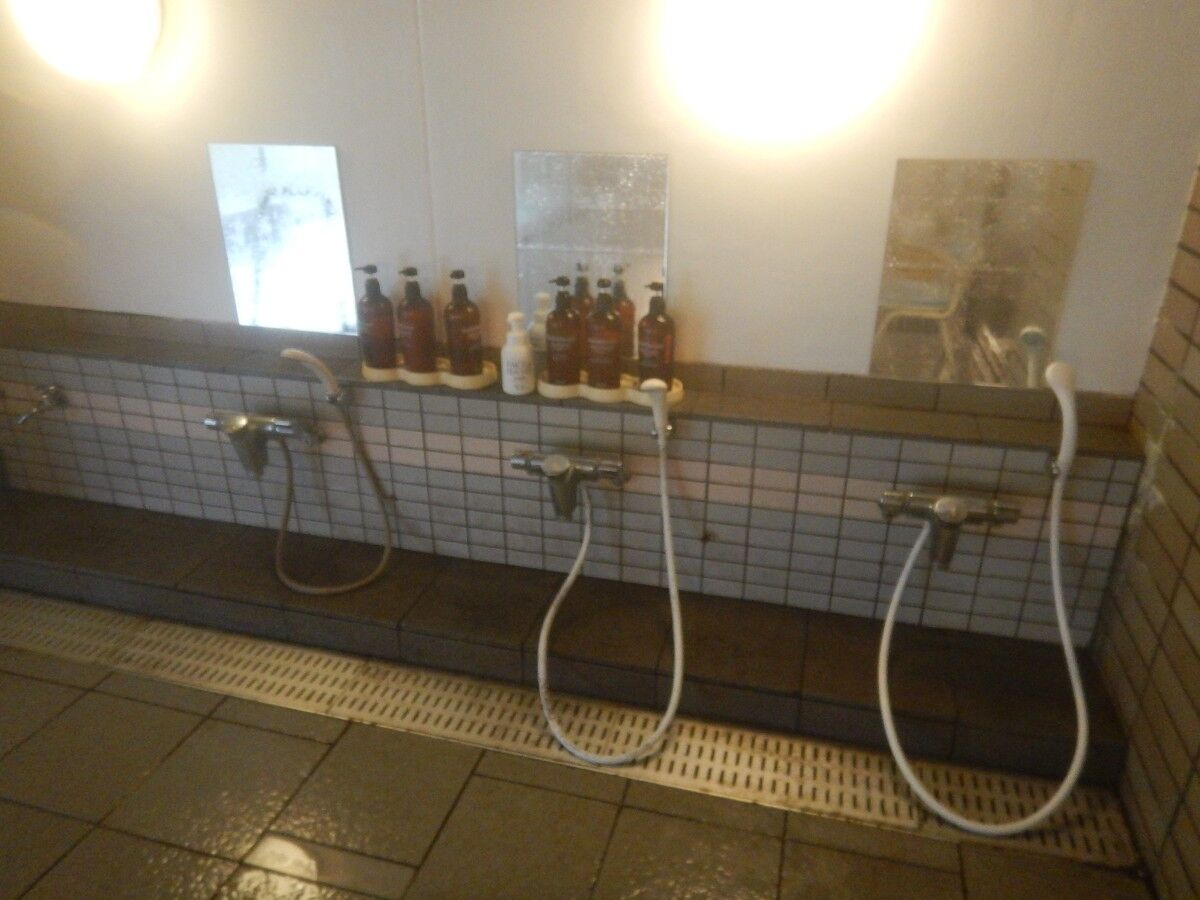 洗い場は両側の壁に並び、水圧も温度も問題なく利用できました。