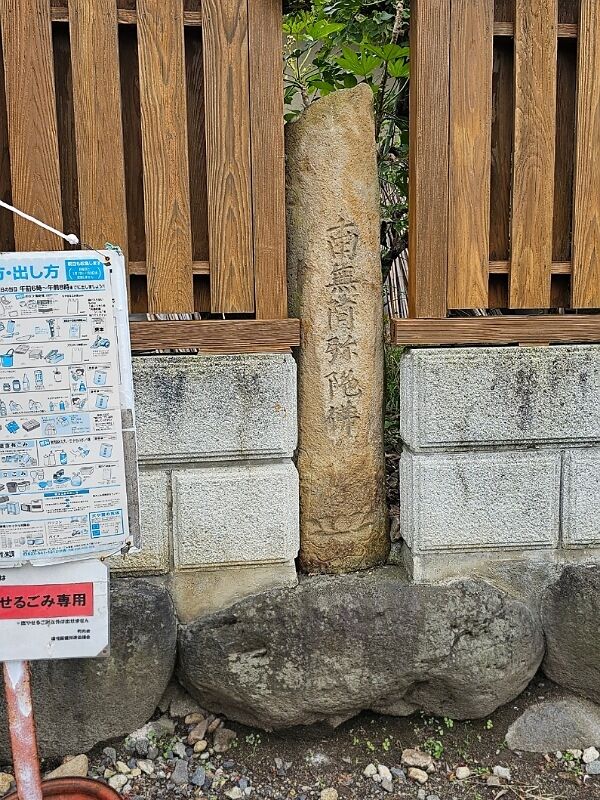 一般住宅の塀に挟まれた石碑。
