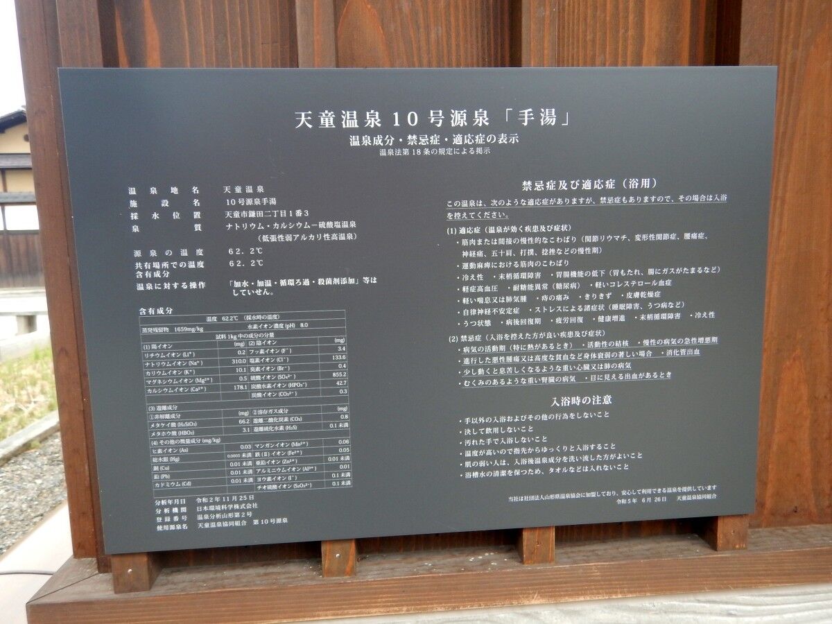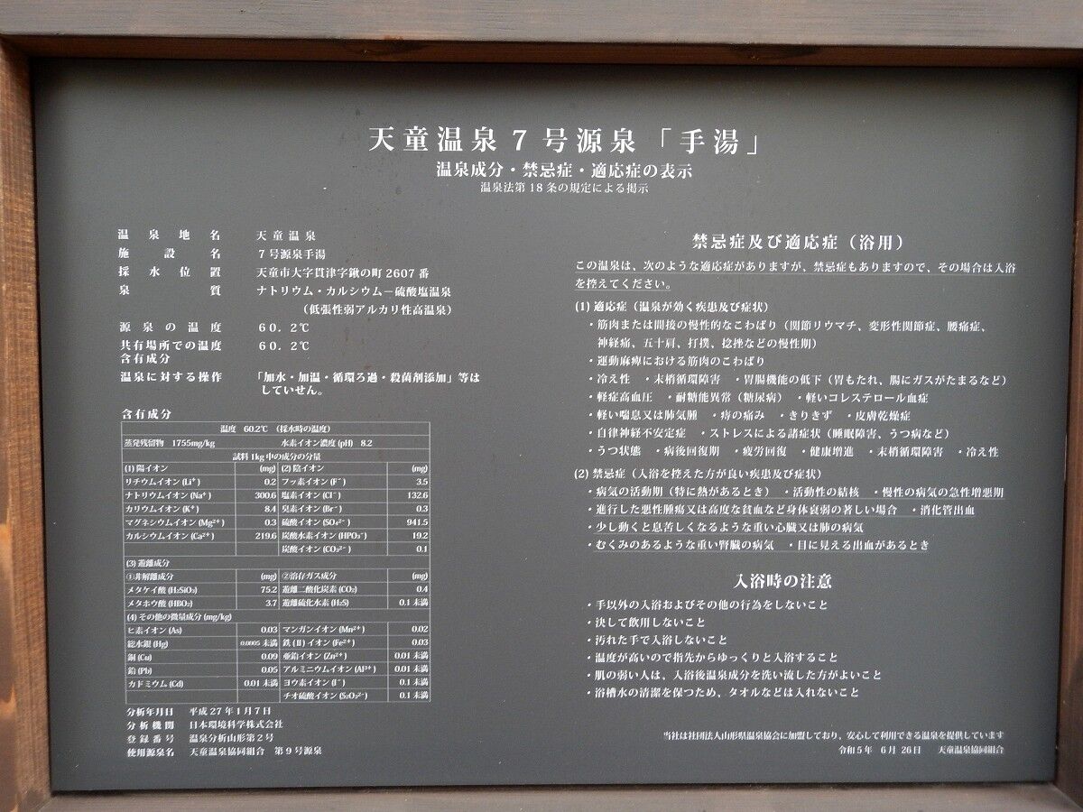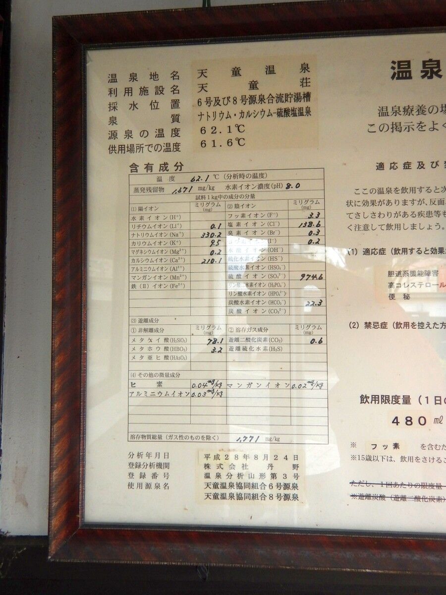 あいにく休止中でしたが、ちゃんと飲湯許可と専用の成分表も掲示されていました。