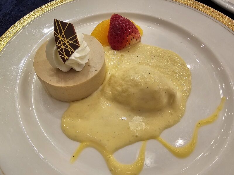 最後のデザート「マロンムース バニラアイス添え」。