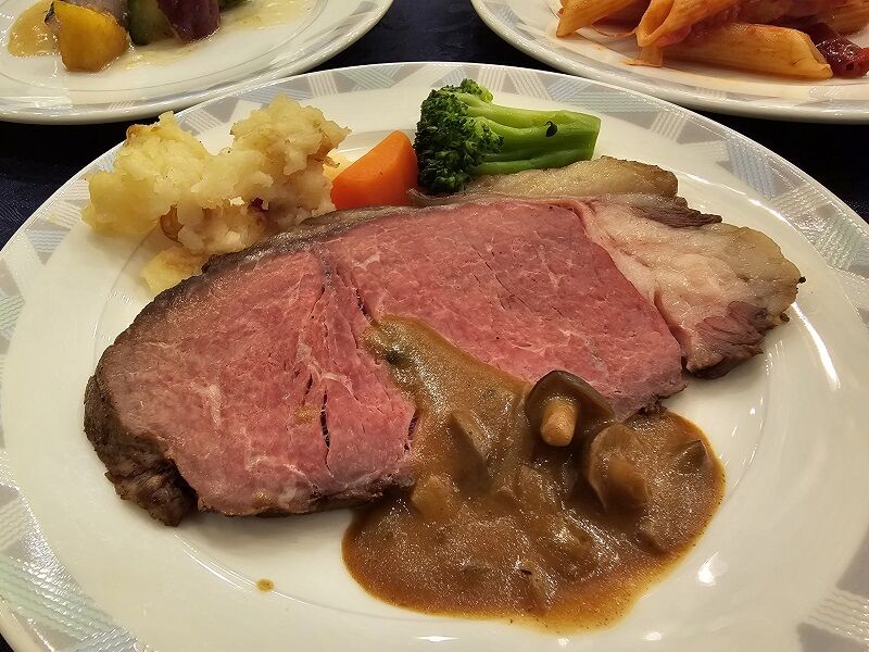 「ローストビーフ キノコのクリームソース」