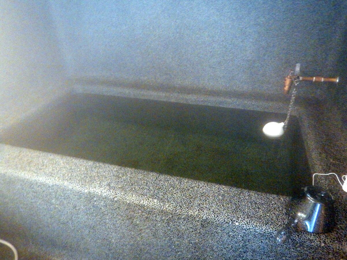 さほど鉄分自体は多くないようですが、すでに湯舟の縁は赤茶けていました。