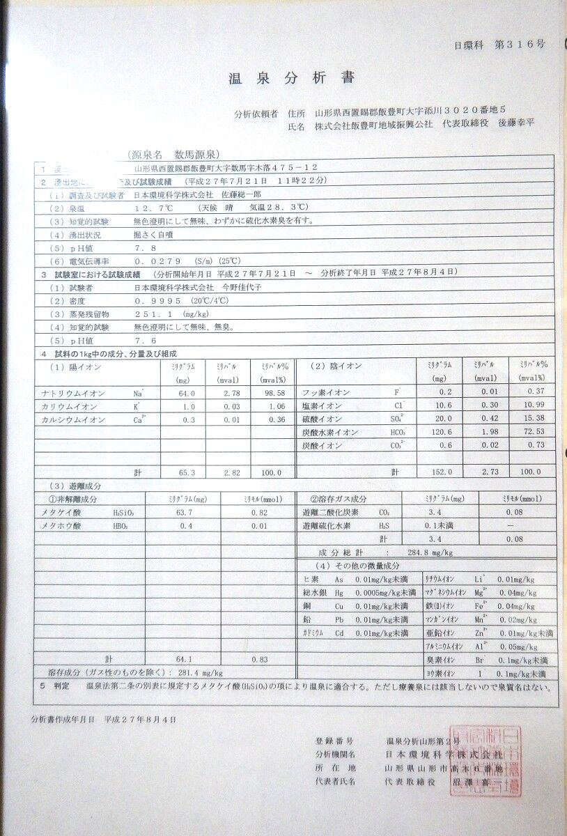 メタケイ酸50mg以上の温泉法上の温泉となっています。