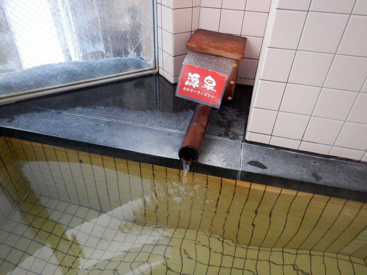 タイル張りの湯舟に、うっすらと黄色っぽいお湯が並々と張られています。