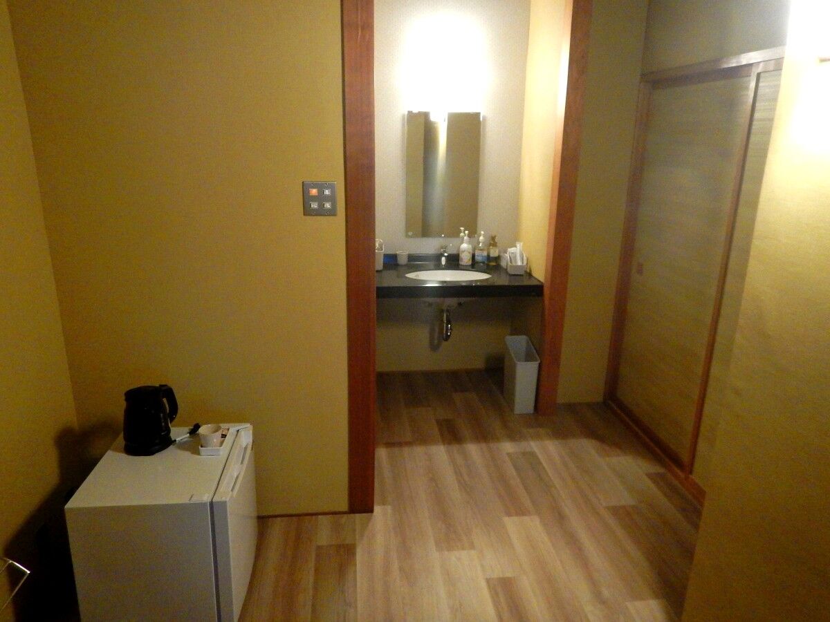 こちらの部屋はトイレ、洗面台のみで風呂は大浴場を利用します。