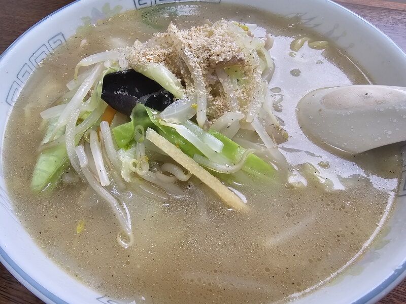 何のラーメンなのかはわからなかったんだけど、おそらく味噌系。メニューを見ても、味噌系でラーメンといったら味噌ラーメンしか見当たらなかったんだよね。それでコレにしてみました(^^;