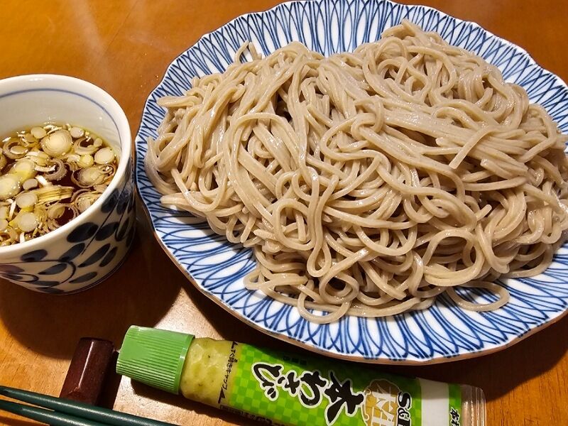 めんつゆも常備してあるので、あとはネギをチョロっと切ったらあっという間に本格盛りそばの出来上がり!