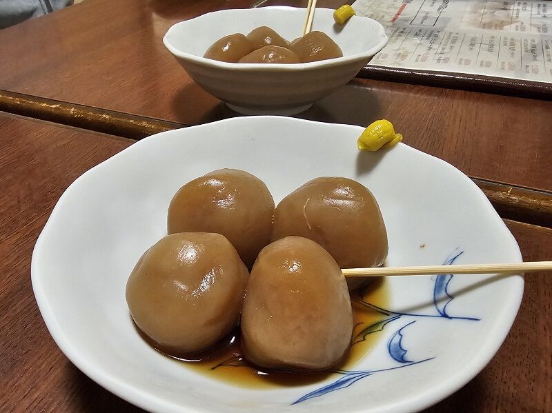玉こんにゃくはこれぐらい色が濃くなってないと美味しくないよね。