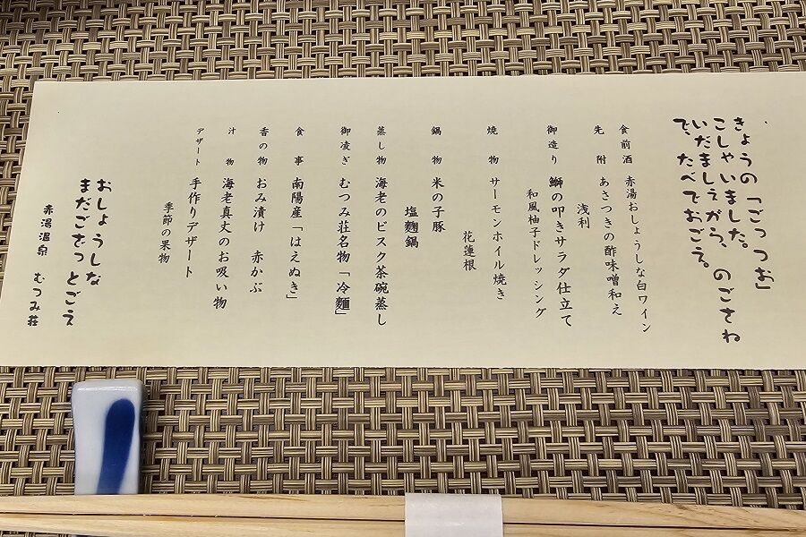 今回はむつみ荘さんの宿泊プランの中でも、最もお手ごろなコース。