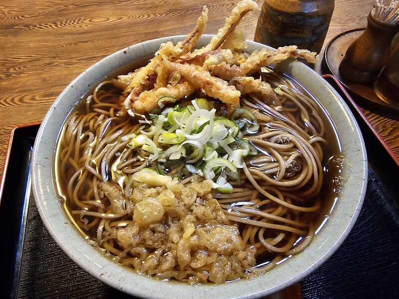 このかけ天は、先日むつみ荘さんにお泊りした日の昼食だったんですけど、僕はその日の仕事がお昼休みまで食い込んでしまって、お昼ごはんが遅くなっちゃったんですよねー。