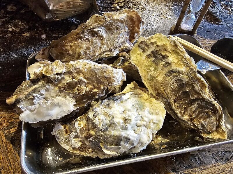 特に、ヨシタケ食堂さんのルールでは40分経過時点でカキが焼き台にのっていたら、それは1個300円で買い取ることになるので、そこも注意して食べました。